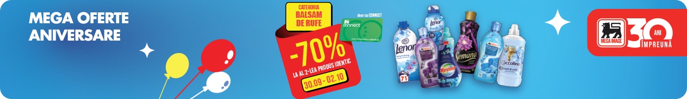 Promoția se desfășoară în ziua de 15.10.2025 și se aplică în toate magazinele Mega Image, Shop&Go și online pe www.mega-image.ro.