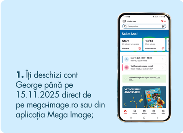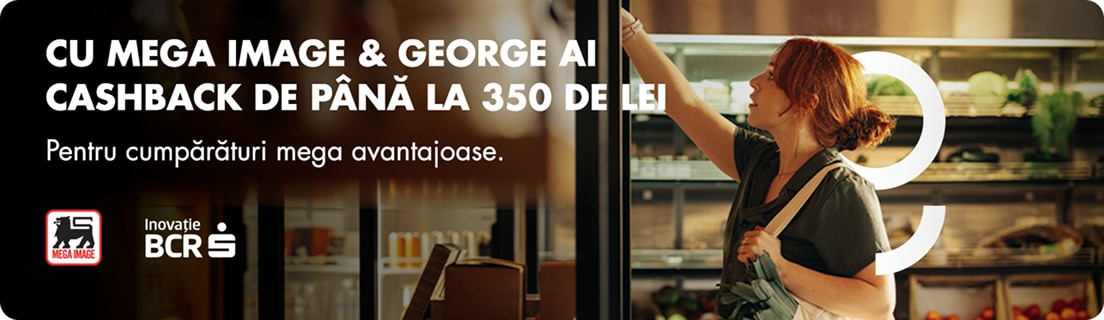 Până pe 15.11.2025, contul George 3.0 îți aduce mai mult decât soluții inteligente de banking și anume – 3 luni de cashback de până la 350 lei la cumpărăturile de la Mega Image, la scanarea cardului Connect.