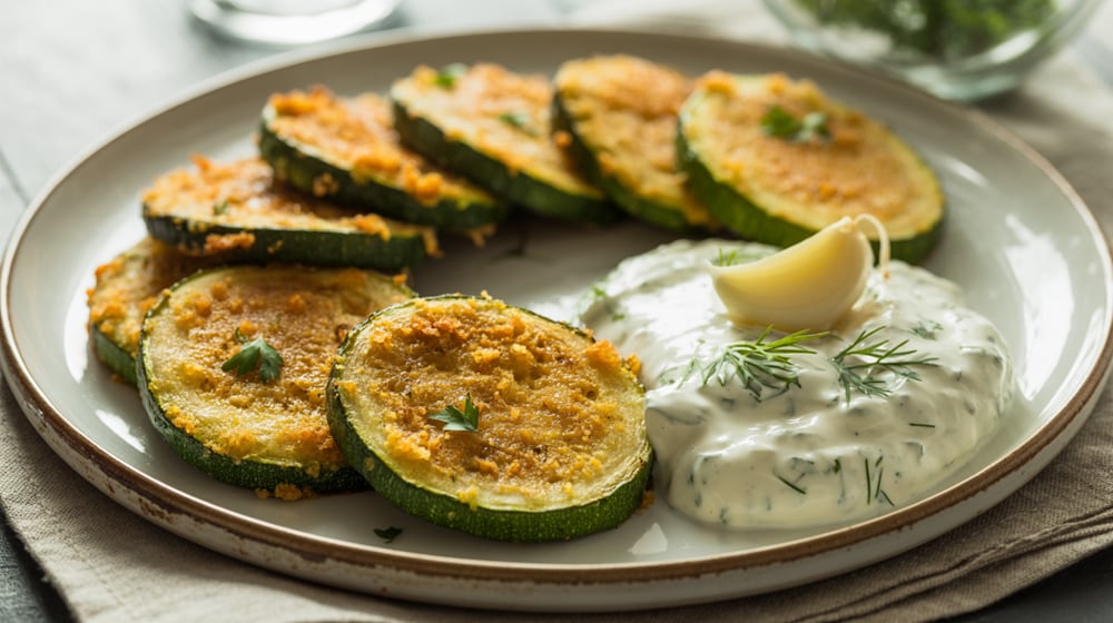 Dovlecei pane grecești: Servește-i alături de un sos tzatziki proaspăt și adaugă puțin oregano uscat în amestecul de pesmet.