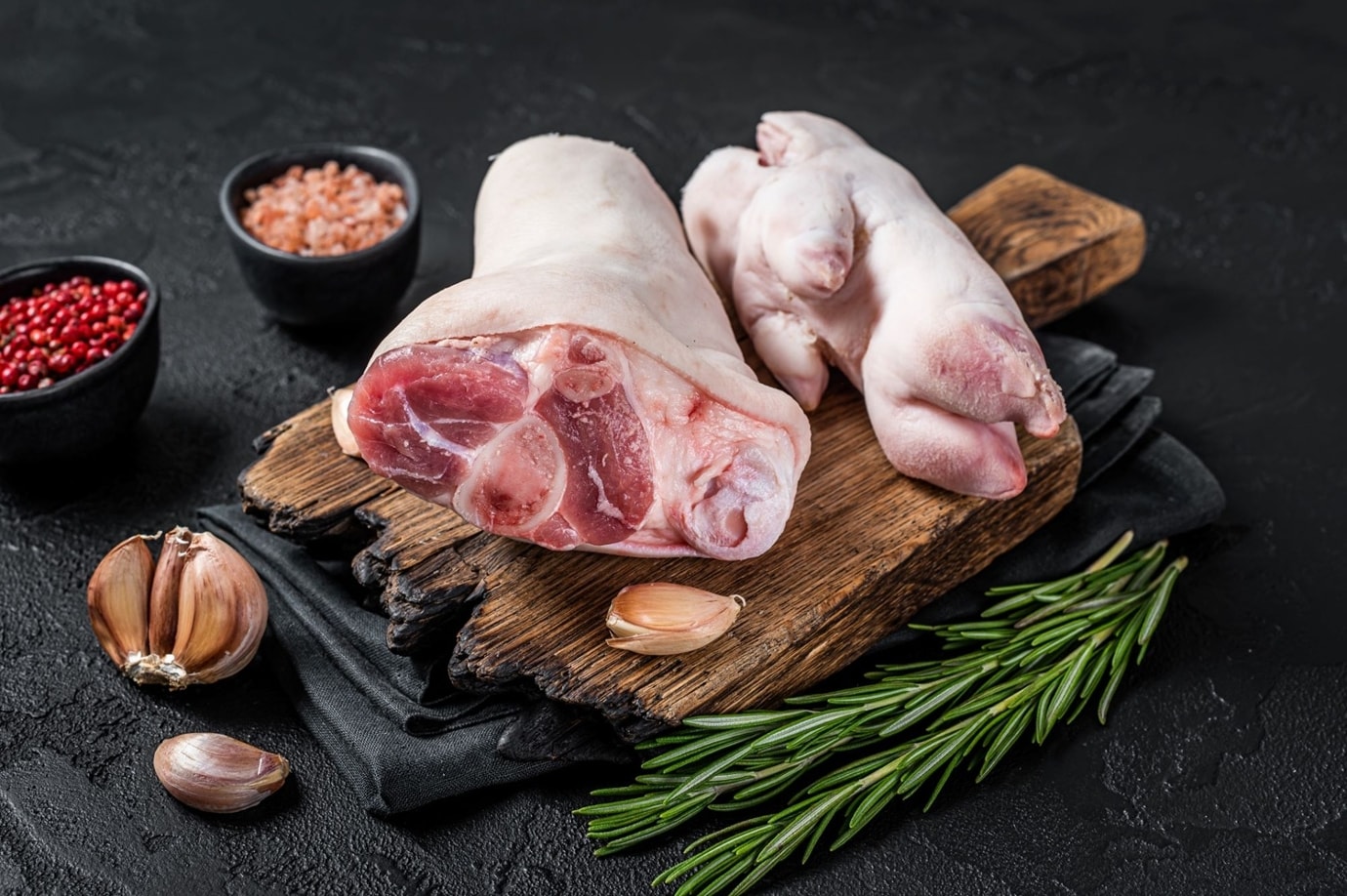 Începe prin a pârli picioarele de porc în zonele cu păr, apoi curăță-le temeinic, ca să îndepărtezi impuritățile. Usturoiul, ingredientul care dă personalitate acestui preparat, se curăță și se lasă deoparte;