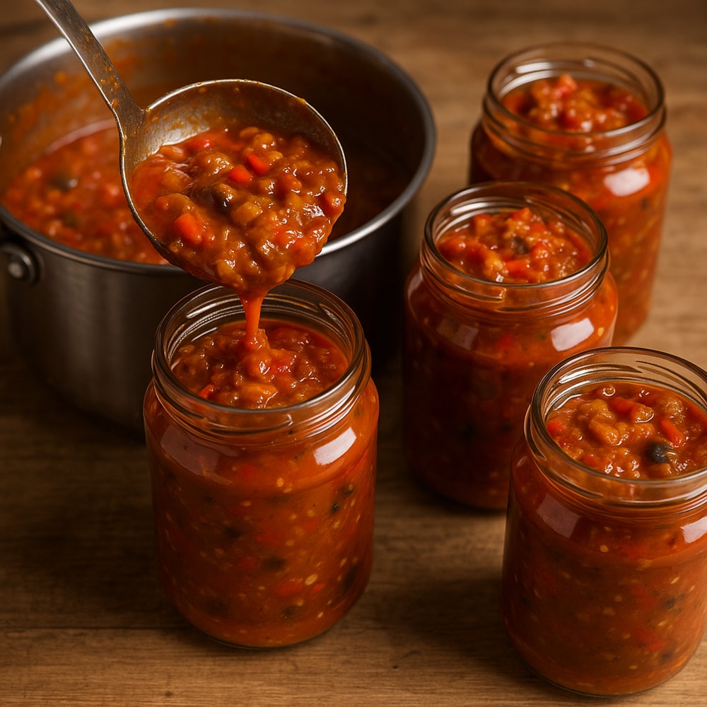 Corectarea texturii: dacă zacusca este prea lichidă, continuă fierberea fără capac; dacă e prea groasă, adaugă suc de roșii cald, treptat.