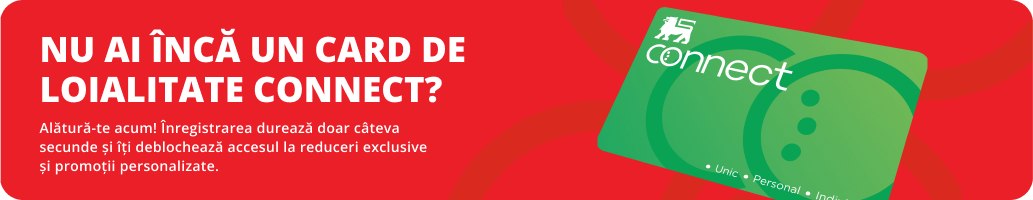 Descoperă cât de simplu este să economisești la fiecare vizită. Scanează cardul Connect și primești automat la casa de marcat, 10% reducere la fiecare coș de cumpărături.